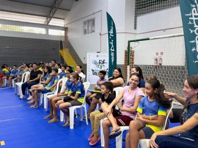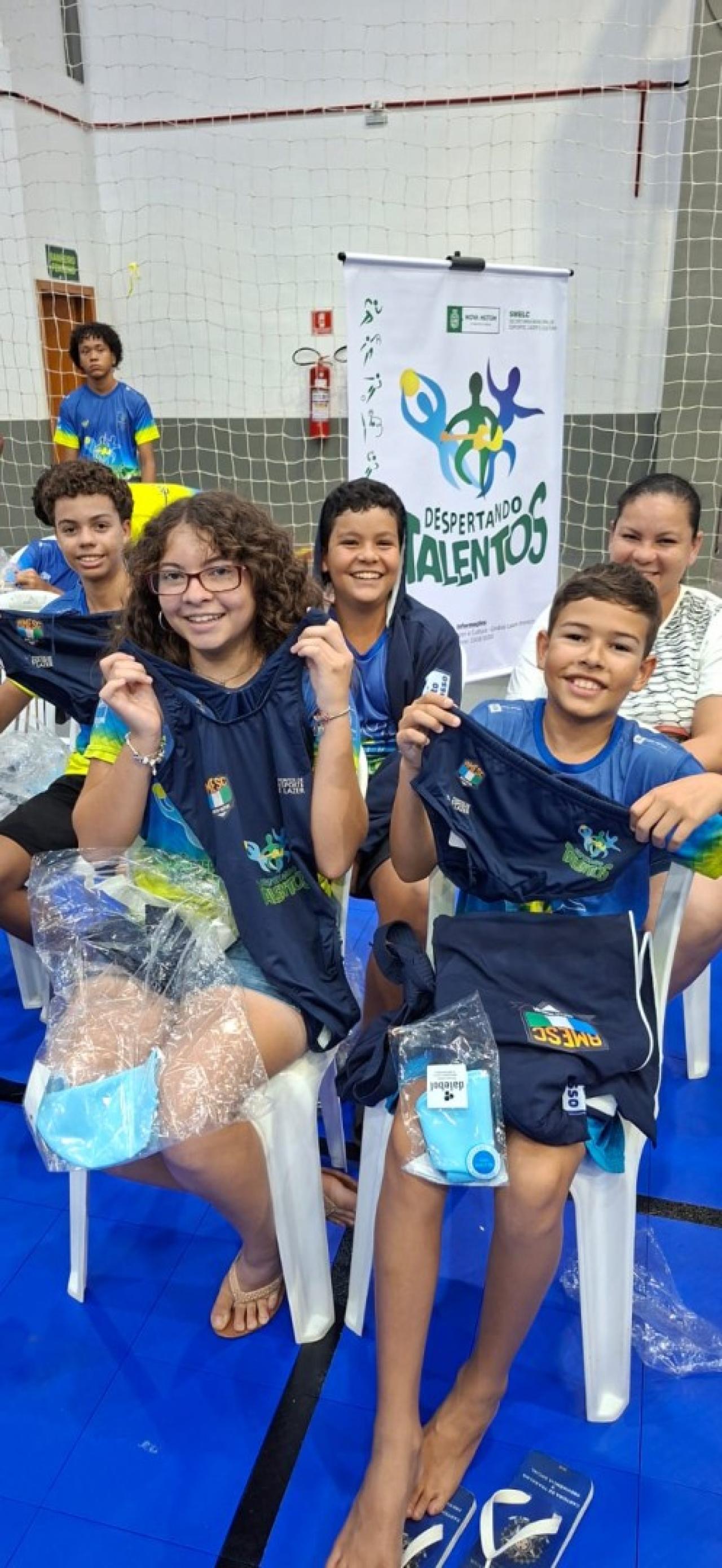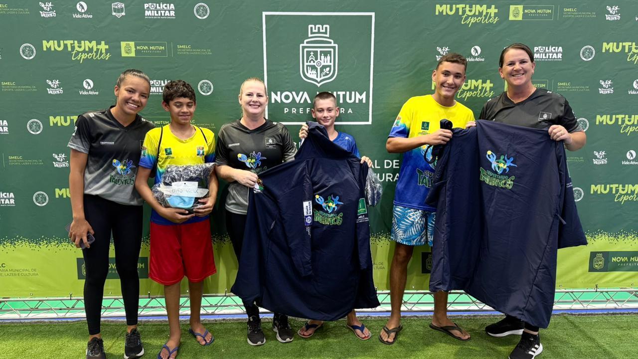 Através de Projeto contemplado, nesta segunda feira(16/03/2026) a Associação Mutum de Esportes e Cultura - AMESC realizou o ato de entrega simbólica dos Kits de Natação, para os alunos do programa Despertando Talentos. Os materiais foram adquiridos via Edital Pontos de Esporte e Lazer 2025, da Secretaria de Estado de Cultura, Esporte e Lazer (SECEL-MT).