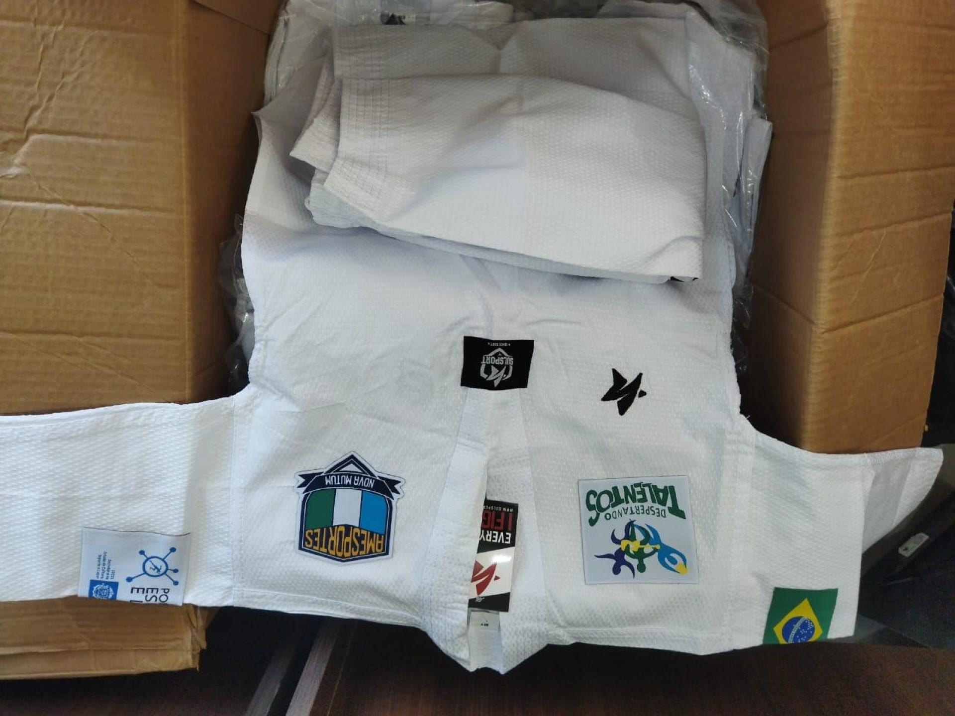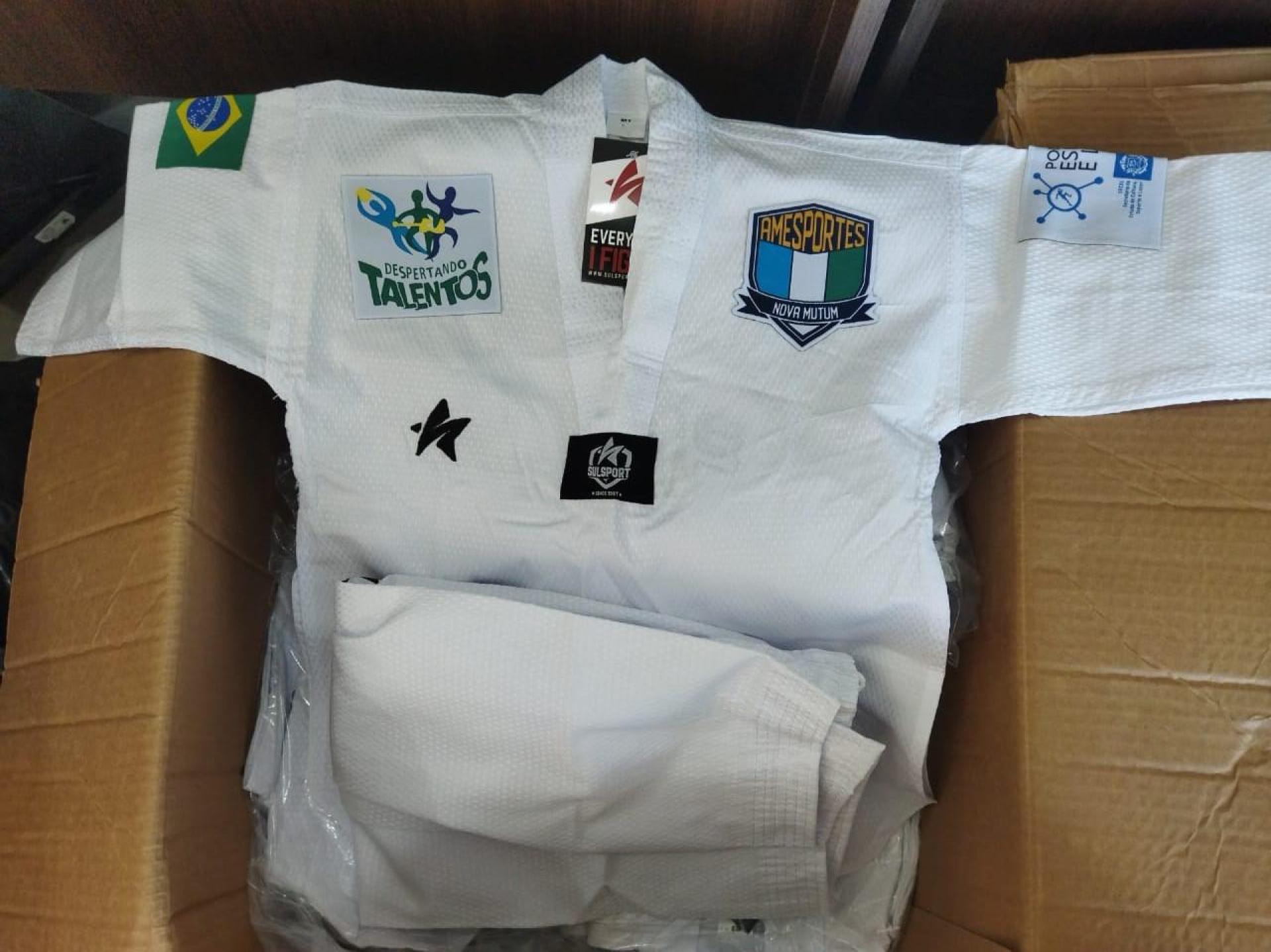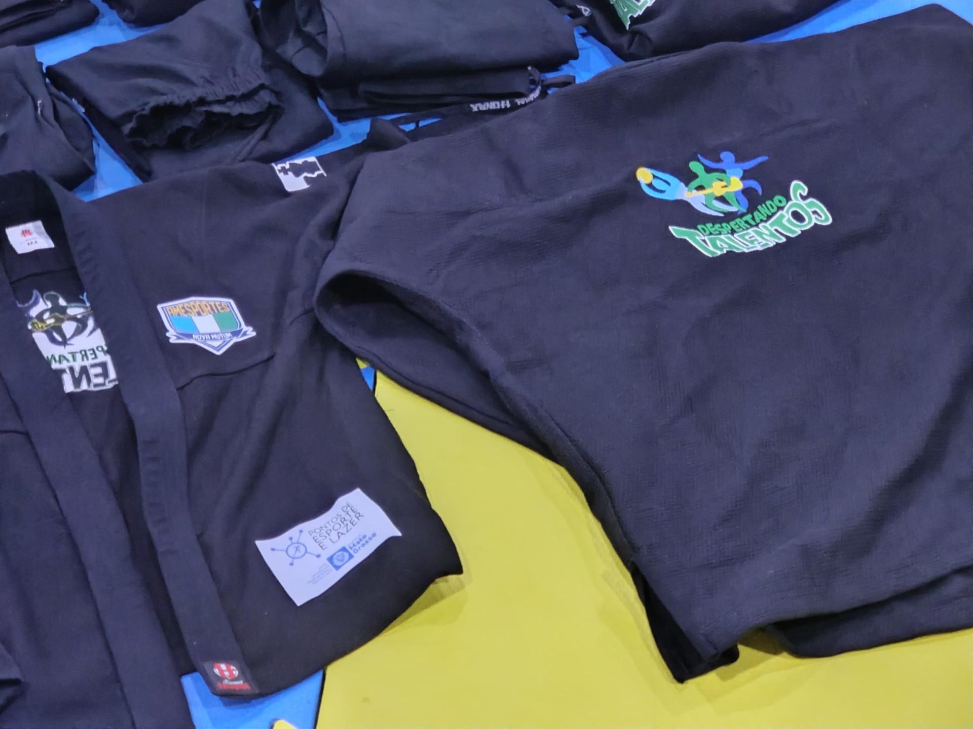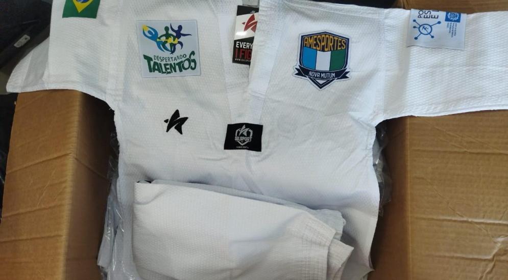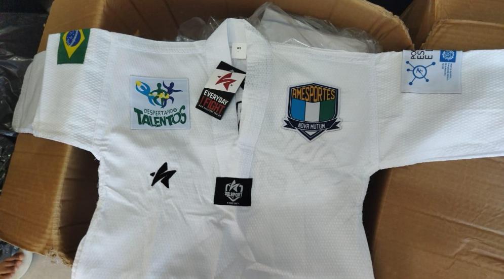 Atletas do Programa Despertando Talentos recebem seus Kimonos de jiu-Jitsu e Doboks de Taekwondo, conforme contemplação através do Termo de Fomento 1961/2024, celebrado com a Secretaria de Estado de Cultura, Esporte e Lazer - SECEL, para Aquisição de vestimentas esportivas (dobok e kimonos) para uso na modalidade de Taekwondo e jiu-jitsu no Programa Despertando Talentos, desenvolvido no Município de Nova Mutum MT.